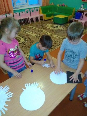 Коллективеая аппликация "Снеговик из ладошек" | |